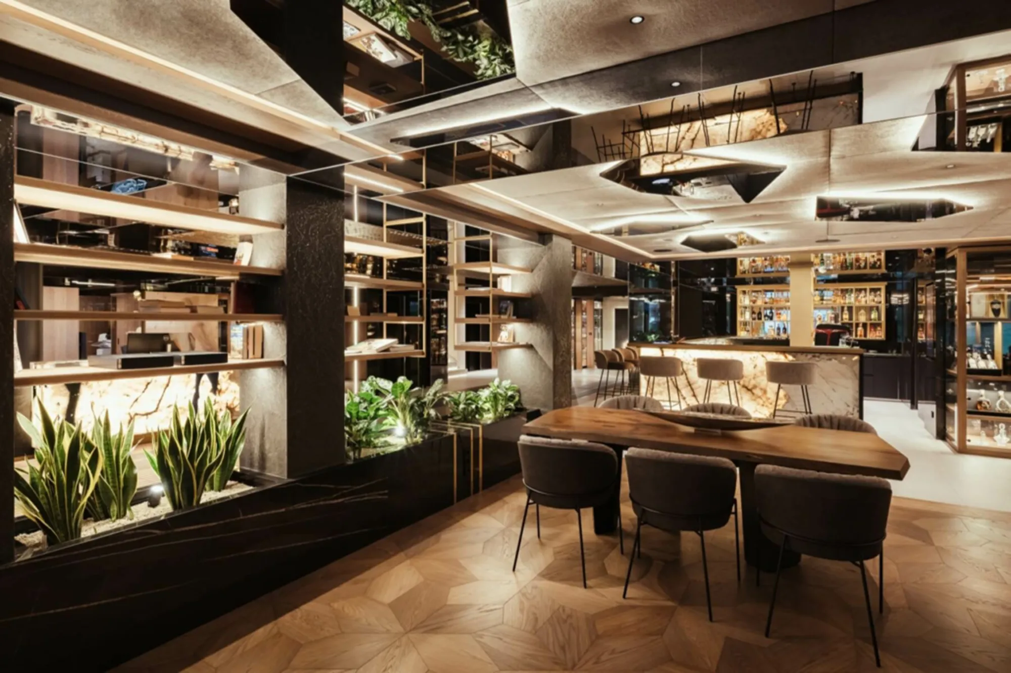 През зимния сезон жадуваме да се заредим с енергията, извираща от планината. Алпите са пленителна дестинация с безброй скътани в полите им места за отдих и вдъхновение. В този пост ще се вдъхновим от красотата и уюта на едно райско кътче в една от най-красивите планински вериги в света. Granvara Relais & SPA Hotel е разположен в живописно планинско градче в подножието на масива Селва. Луксозният четиризвезден хотел посреща нозете на своите гостите с фигурален паркет на партньорите ни от Foglie d’Oro. Формите му изпълват лоби бара и рецепцията с красивите цветни очертания на Azalea. Избраният цвят на паркета е опушен дъб с вградени месингови елементи. Насладете му се!
